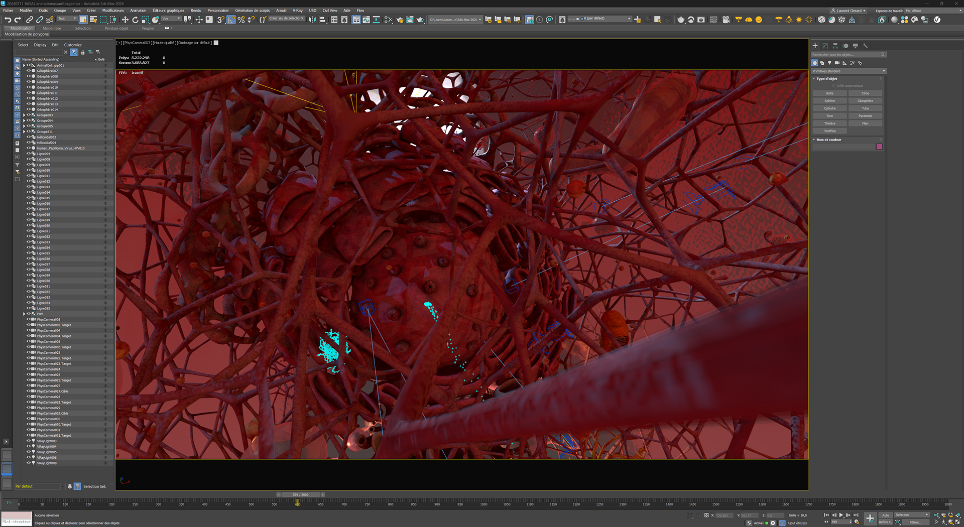 Documentation scientifique, storyboard, gestion des données, modélisation 3D, animation, montage, création sonore, phases de validation et publication finale.